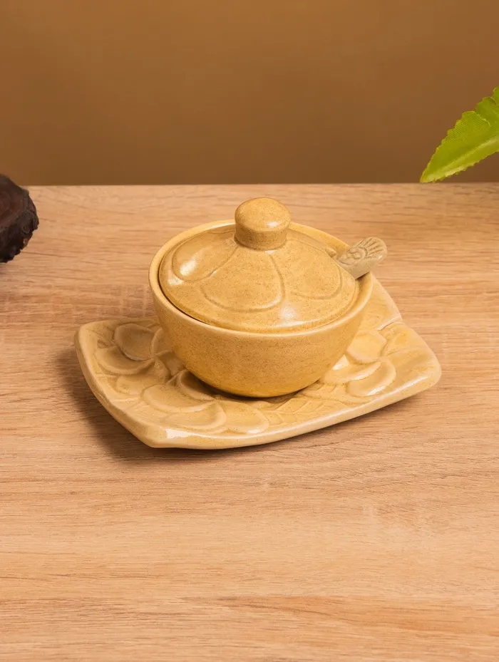 Соусник с крышкой на подставке «Классика», 11×8×7 см, керамика, бежевый