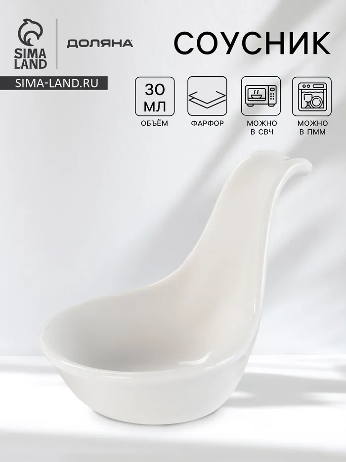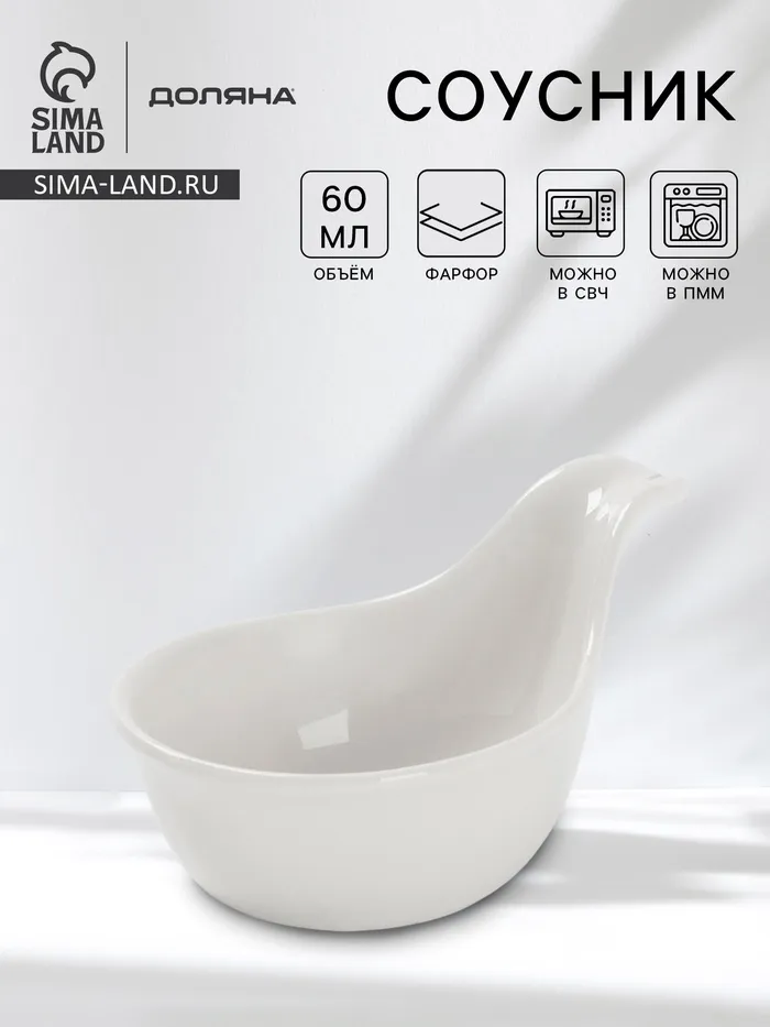 Соусник Доляна White Label, 60 мл, 12×8×6 см, фарфор, белый