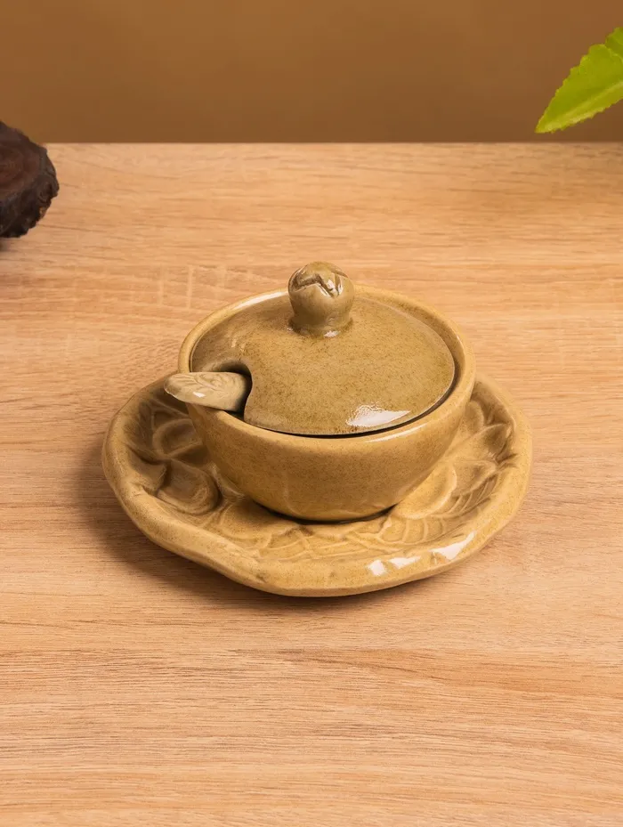 Соусник с крышкой на подставке «Лягушка», 8×9×10 см, керамика, зелёный
