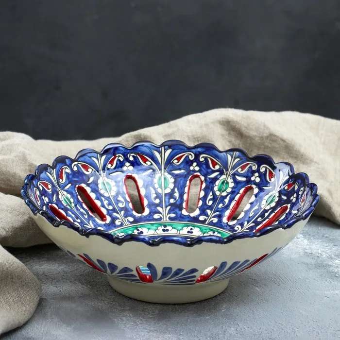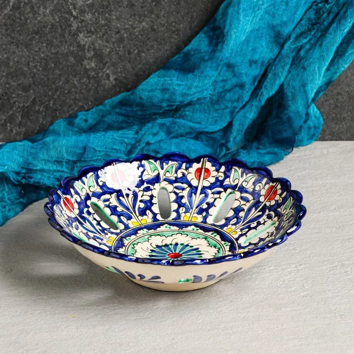 Фруктовница Риштанская Керамика "Узоры", 25 см, синяя