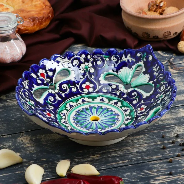 Фруктовница Риштанская Керамика "Узоры", 23 см, синяя