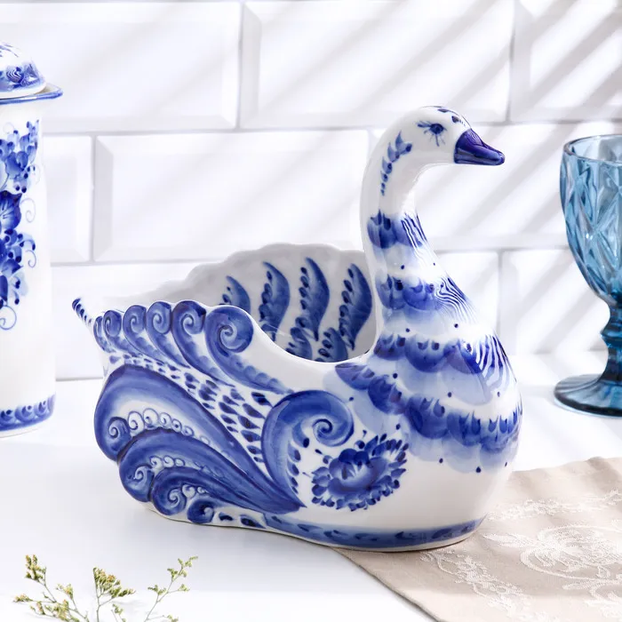 Фруктовница «Белая уточка», 25×12×24 см, гжель