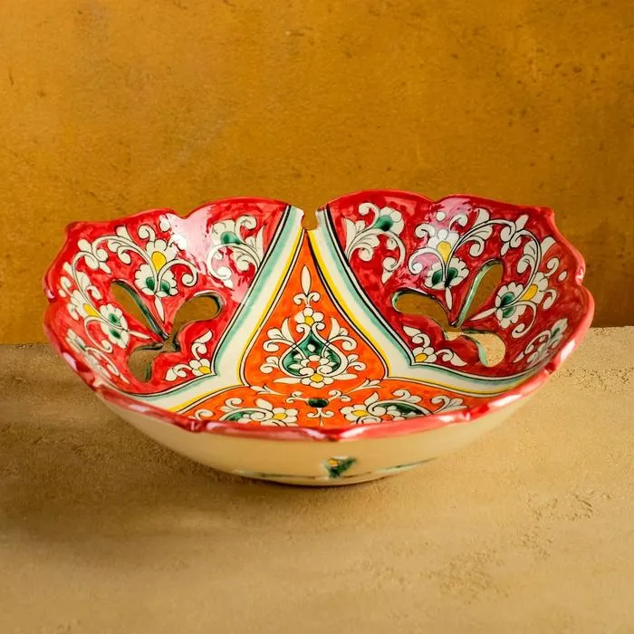 Фруктовница Риштанская Керамика "Цветы", 26 см, красная