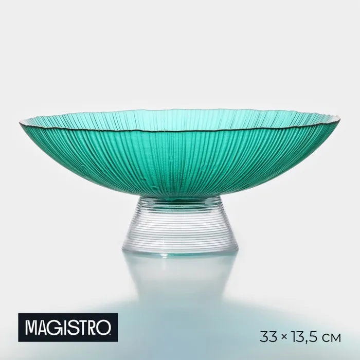 Ваза для фруктов Magistro «Фейерверк», 3.8 л, 33×13.5 см, стекло, цвет изумрудный