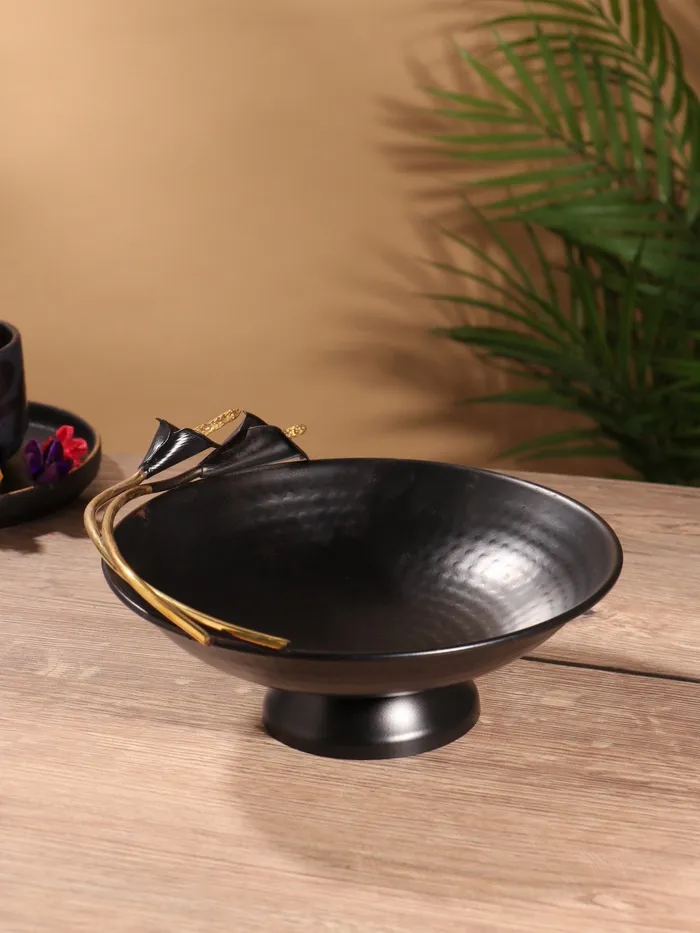 Фруктовница "Черный каллы" черная с золотом. нержавеющая сталь 21,5х23х9,5 см