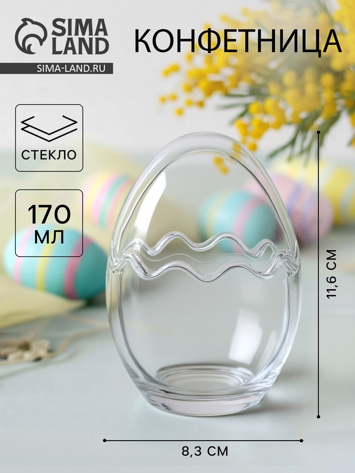 Конфетница «Яйцо», 170 мл, 8.3×11.5 см, стекло, прозрачная
