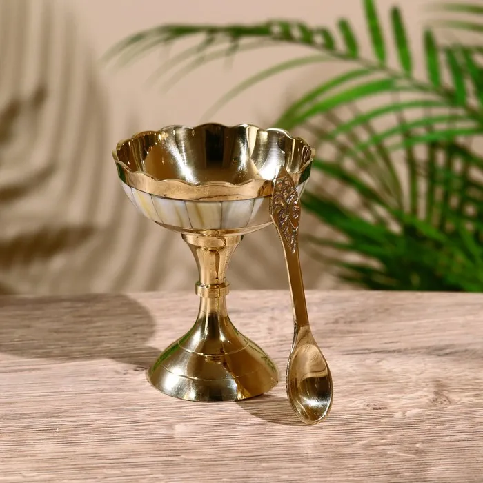 Креманка "Айс крим" с ложечкой, латунь 9 см