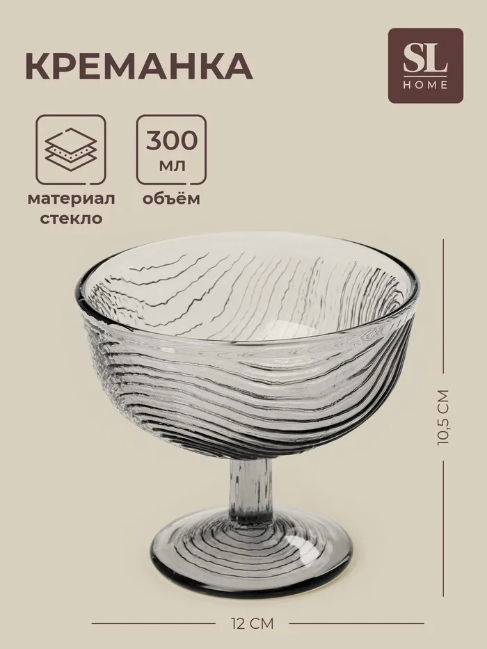 Креманка SL-Home «Барк», 300 мл, h=10.5 см, стекло, серая