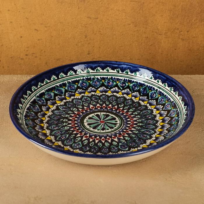 Ляган Риштанская Керамика "Узоры", 33 см, синий, глубокий