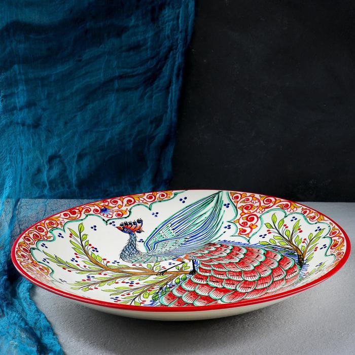 Ляган узбекский Риштанская Керамика «Жар-Птица», d=41 см, красный