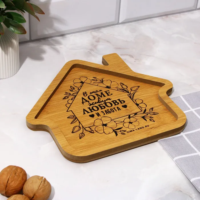 Подарочный набор менажниц деревянных «Домашние мелочи», 2 шт. домик 24×21 см, менажница 40×12.3 см
