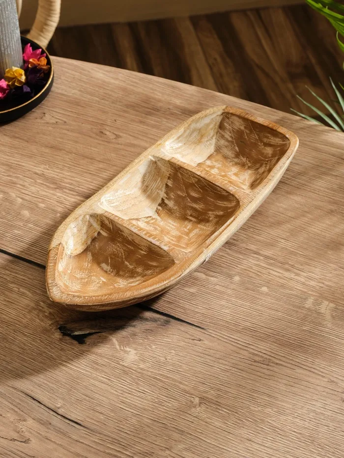 Менажница «Лодочка», дерево Джати, 30×13×5 см, коричневая