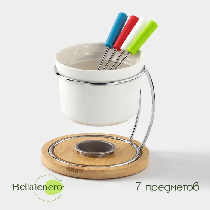 Набор для фондю BellaTenero, 5 предметов: чаша 250 мл, подставка, 4 шпажки, керамика, белый