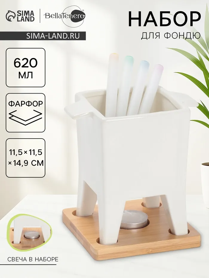 Набор для фондю BellaTenero, 620 мл, 4 шпажки, керамика, белый