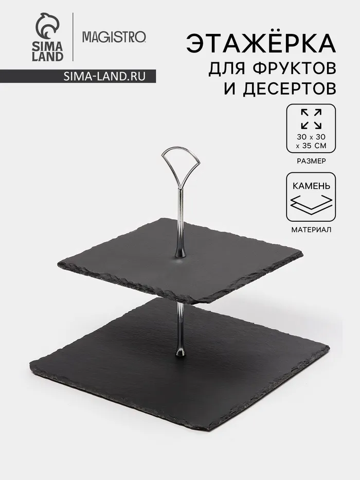 Этажёрка для фруктов и десертов Magistro Valley, 2 яруса, 25/20×28 см, сланец, чёрная