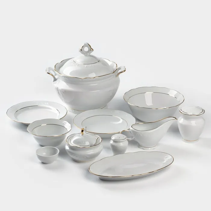 Сервиз столовый фарфоровый «Бельё», 48 предметов, цвет белый