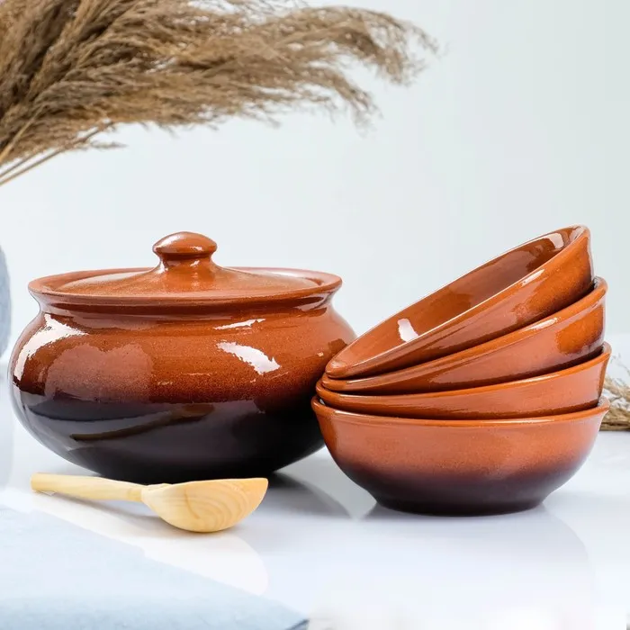 Набор посуды "Вятская керамика" 2,5л + 4х0,5л + ложка, традиционный