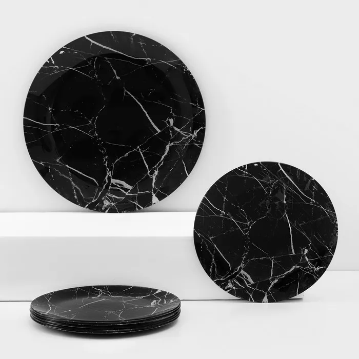 Набор столовый Доляна «Мрамор», 7 предметов: тарелка d=30 см - 1 шт., d=21.5 см - 6 шт., стекло, чёрный