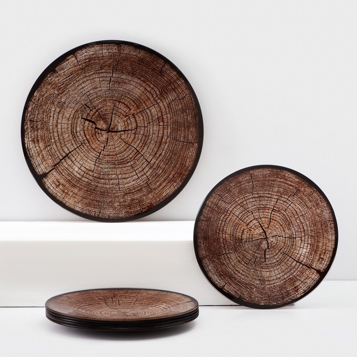 Набор столовый Доляна «Спил дерева», 7 предметов: 30 см - 1 шт., 21.5 см - 6 шт., стекло, коричневый