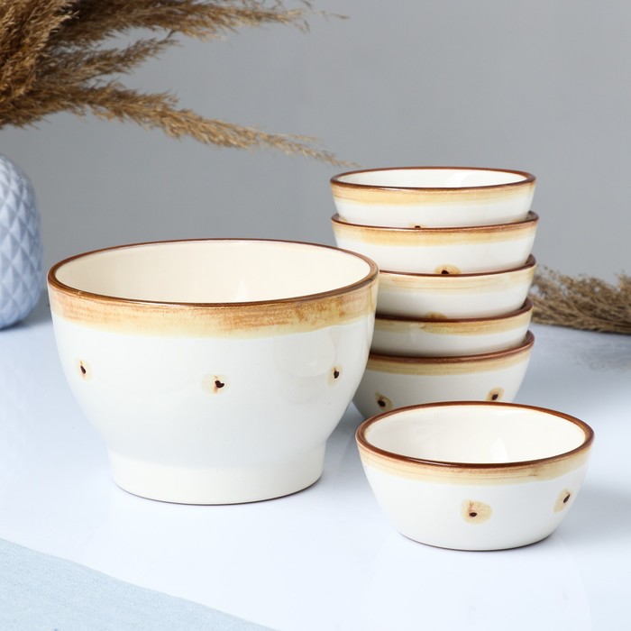 Набор салатников Псковский гончар «Карамель», 7 предметов: 6 шт. 200 мл, 1 шт. 1 л, керамика