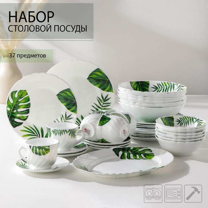 Сервиз столовый «Лист папоротника», 37 предметов, стеклокерамика, белый