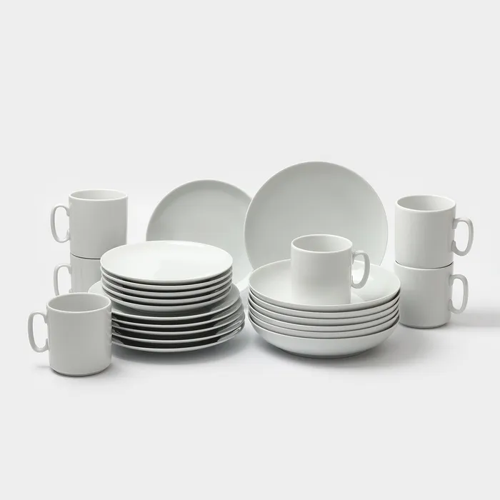 Набор фарфоровой посуды «Классический», 24 предмета: тарелка плоская d=17,5 см, d=20 см, тарелка глубокая 700 мл, d=20 см, кружка 300 мл