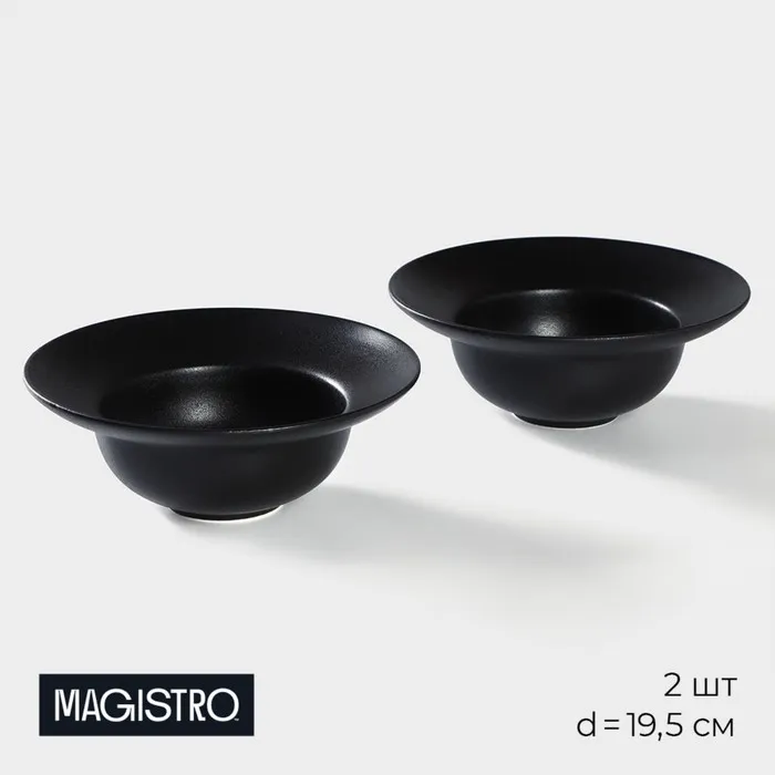Тарелки для пасты Magistro Carbon, d=19,5 см, набор 2 шт, фарфор, чёрные