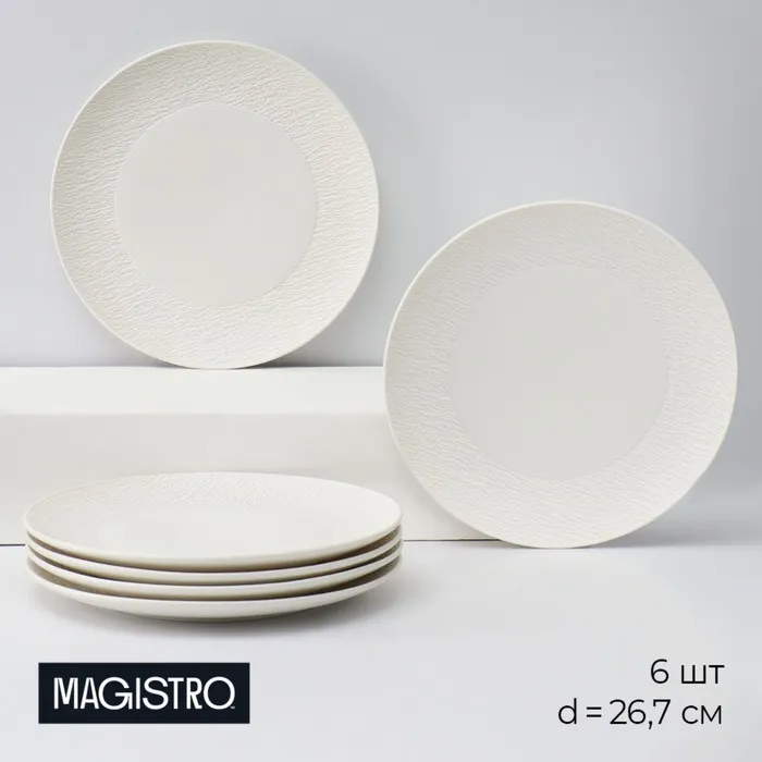 Тарелки Magistro Lofty, d=26.7 см, набор 6 шт., фарфор, белые