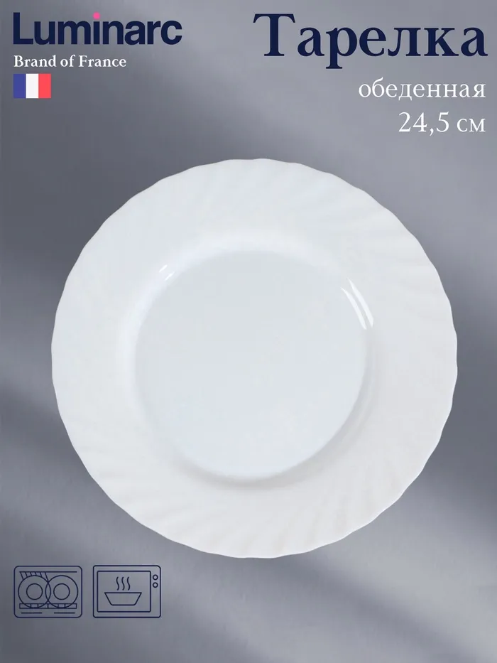 Тарелка Luminarc Trianon, d=24.5 см, обеденная, стеклокерамика, белая