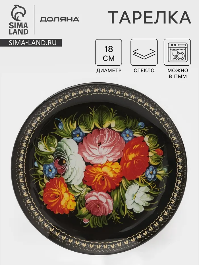 Тарелка Доляна «Народные мотивы», d=18 см, стекло, чёрная