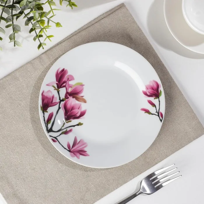 Тарелка пирожковая Доляна «Сакура», d=17.5 см, керамика, белая