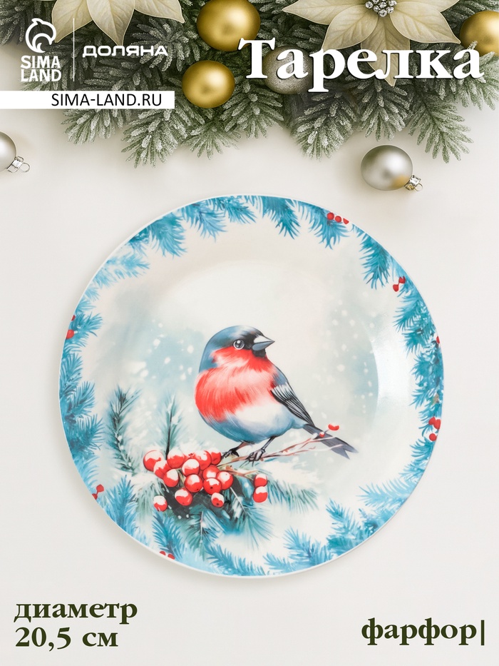 Тарелка новогодняя Доляна «Зимний вечер», d=20.5 см, фарфор, белая
