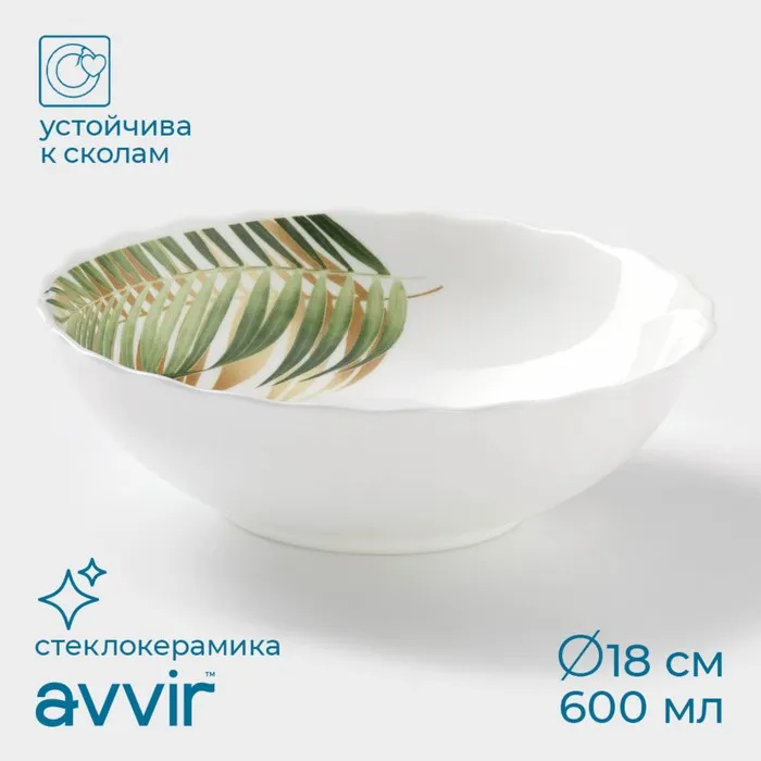 Тарелка глубокая Avvir «Юкка», 600 мл, d=18 см, стеклокерамика, белая