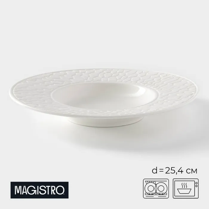 Тарелка для пасты Magistro Rodos, 250 мл, d=25.4 см, фарфор, белая