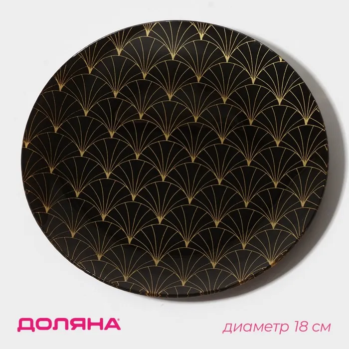 Тарелка Доляна «Золотое перо», d=18 см, стекло, чёрная