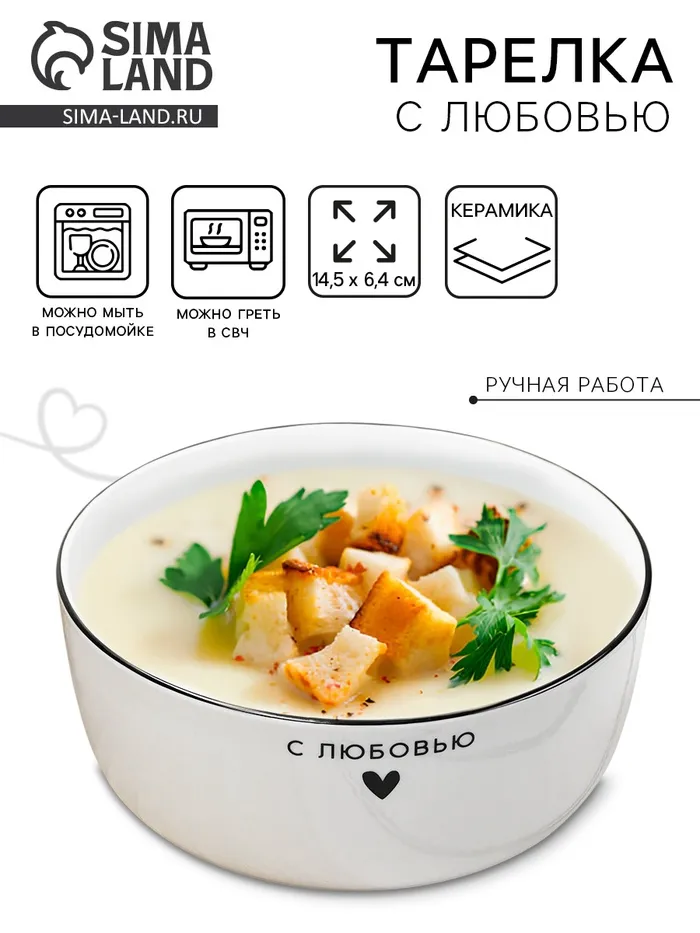 Тарелка керамическая глубокая «С любовью», 14.5×6.4 см, объём 600 мл, Dolce Ceramo