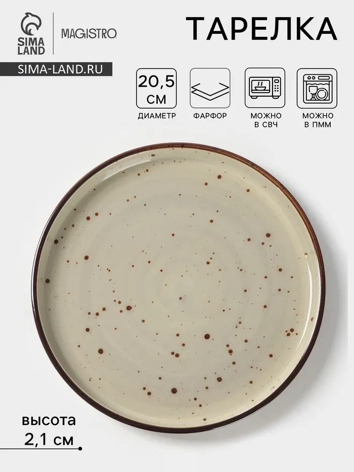 Тарелка с бортиком Magistro Mediterana, d=20.5 см, фарфор, бежевая
