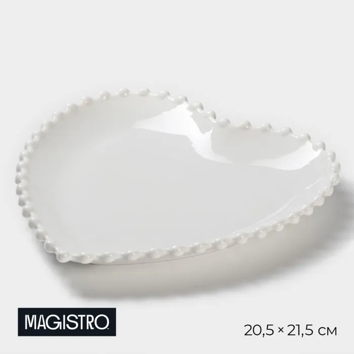 Тарелка Magistro «Сердце», 20.5×21×2.5 см, фарфор, белая