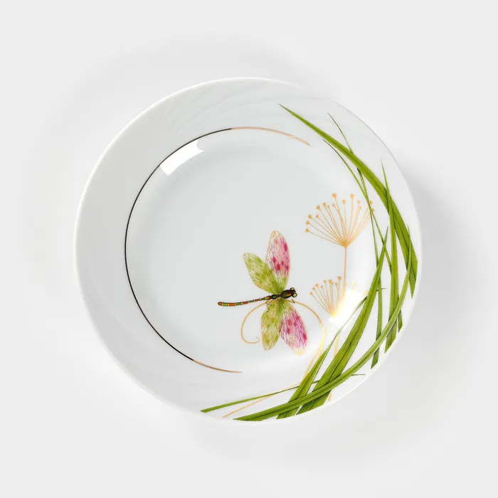 Тарелка фарфоровая «Стрекоза», d=17,5 см, белая