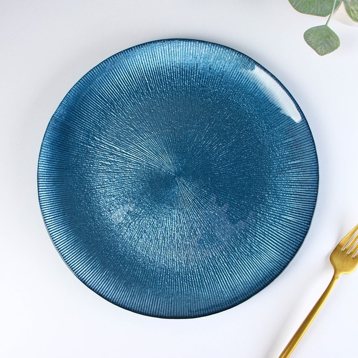 Тарелка стеклянная обеденная «Римини», d=27 см, цвет синий