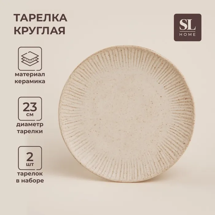 Тарелки SL Home «Виенто», d=23 см, набор 2 шт., керамика, бежевые
