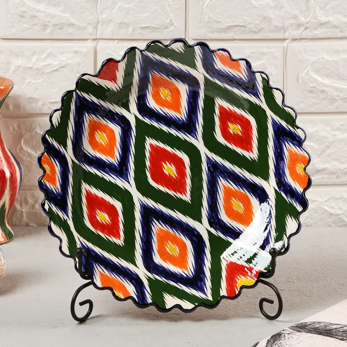 Тарелка Риштанская Керамика «Атлас», d=25 см, керамика, рифлёный край, разноцветная