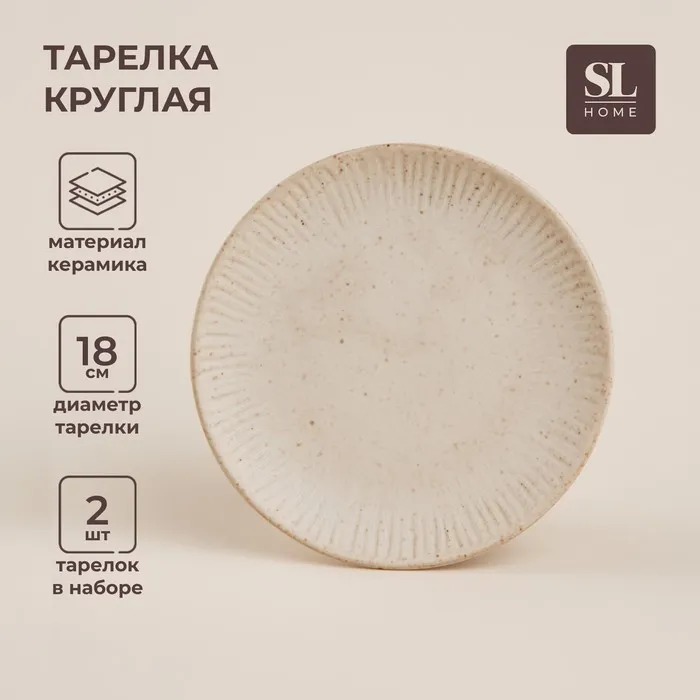 Тарелки SL Home «Виенто», d=18 см, набор 2 шт., керамика, бежевые