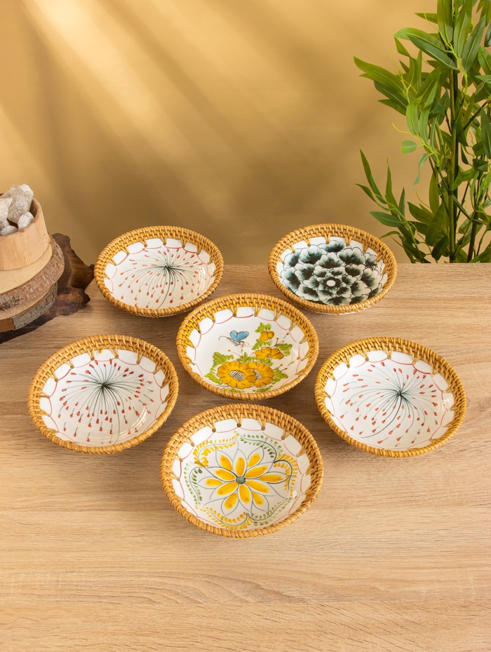 Тарелка керамическая с ротангом, 18×18×3.7 см, МИКС