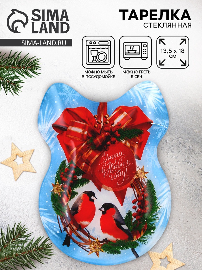 Тарелка плоская новогодняя «Уюта в Новом году», 13.5×18 см, стекло