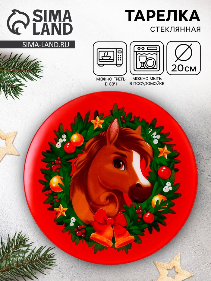Тарелка плоская новогодняя «Лошадь», d=20 см, стекло