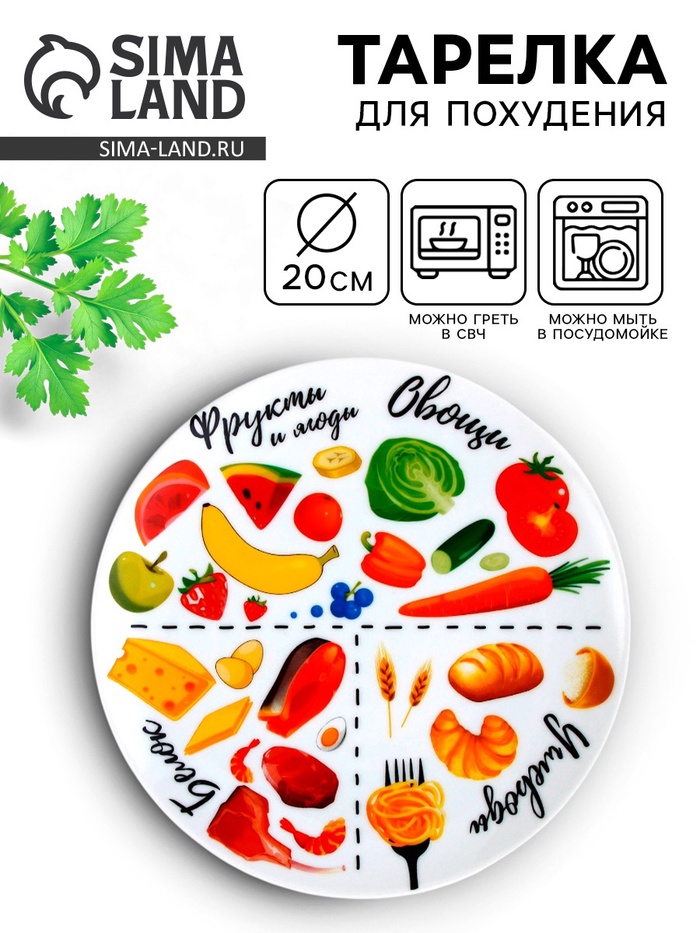 Тарелка плоская керамическая «Правильное питание», d=20 см