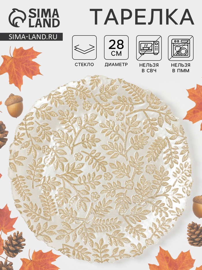 Тарелка «КРАСКИ ОСЕНИ», d=28 см, стекло, золотистая