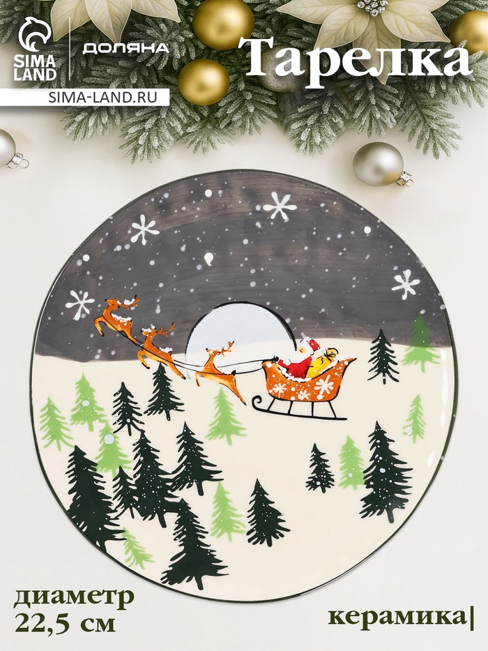 Тарелка новогодняя Доляна «Путь к чудесам», d=22.5 см, керамика, разноцветная