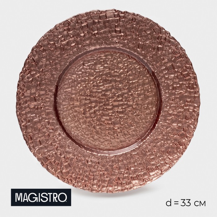 Тарелка стеклянная подстановочная Magistro «Кринкл», d=33 см, цвет розовый